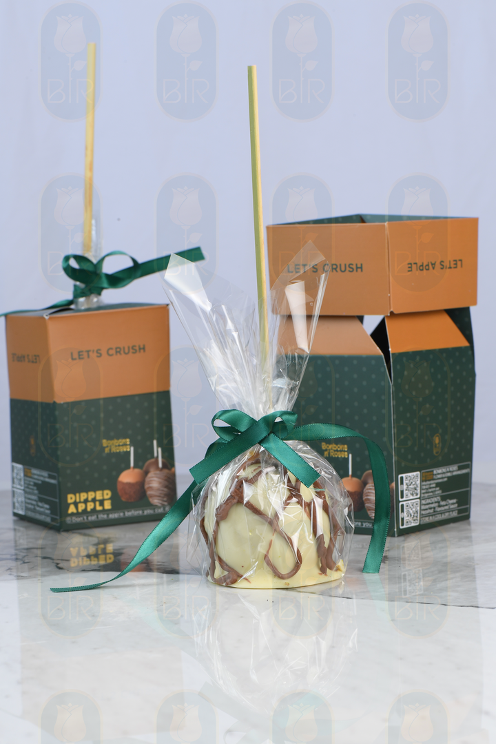 Get the best of both worlds! Our fresh apples are double-dipped in rich caramel and then coated in special and high quality white chocolate.